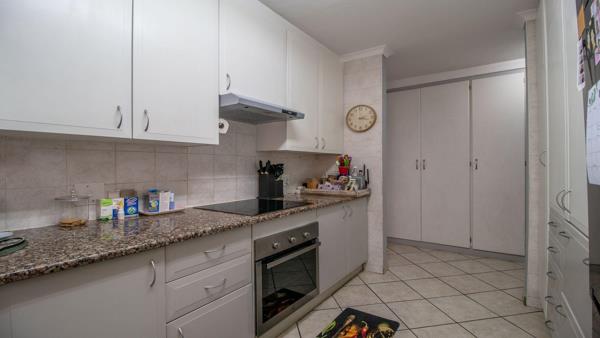 The kitchen is neat, white and bright and offers a generous amount of cupboard space.