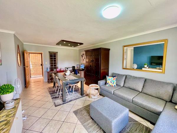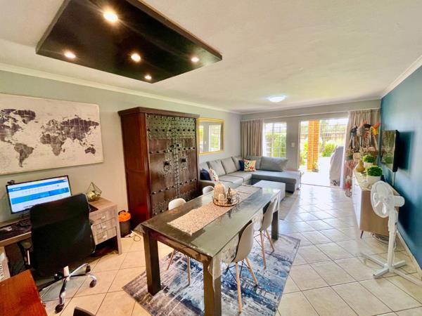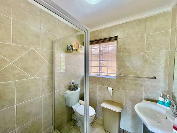 This delightful 2-bedroom townhouse comes with numerous benefits. As you step through the door, you are greeted by a welcoming lounge area that opens onto an undercover stoep featuring a built-in braaiperfect for entertaining. The neat and well-sized garden offers a serene outdoor space to relax. Inside, the main bedroom boasts an en-suite bathroom, while the second bedroom is served by another bathroom. The kitchen is well-appointed with sleek white cabinetry, and the townhouse is tastefully finished with tiles throughout, except for the cozy laminate flooring in the bedrooms.