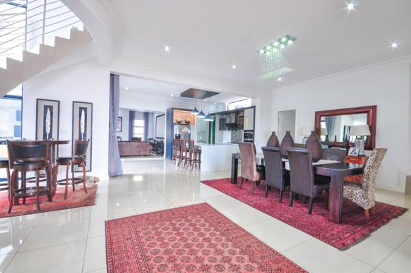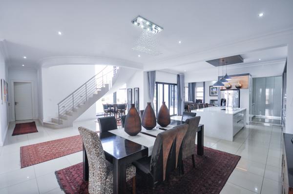 Upon entry, one is welcomed by a formal lounge to the left, gracefully leading to a generously proportioned dining room, ideally situated adjacent to the open-plan kitchen. This home exemplifies a harmonious fusion of modern elegance and high-end finishes throughout.
