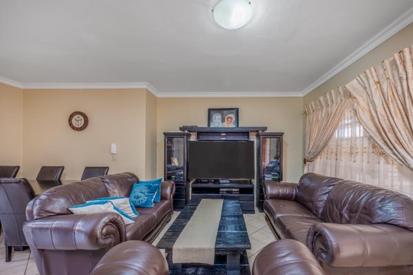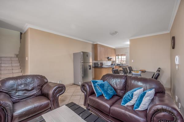 The kitchen flows seamlessly into the open-plan dining and living room, creating a warm and inviting atmosphere ideal for family living and entertaining. A private courtyard offers a convenient area for hanging washing, while the built-in braai and small garden make outdoor living easy and enjoyable.