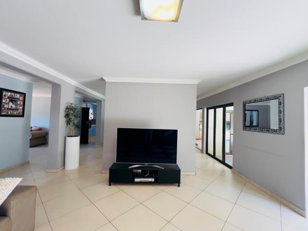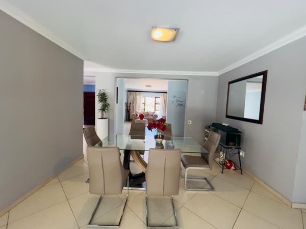 The property offers four spacious bedrooms, including a luxurious master bedroom, and three bathrooms. A convenient guest bedroom is located on the ground floor, while the remaining three bedrooms are upstairs. With three garages and situated in a tight and secure estate with 24hr security guarding, this property offers the ultimate blend of comfort, security, and style. Don''t miss out on this incredible opportunity to make this house your dream home!