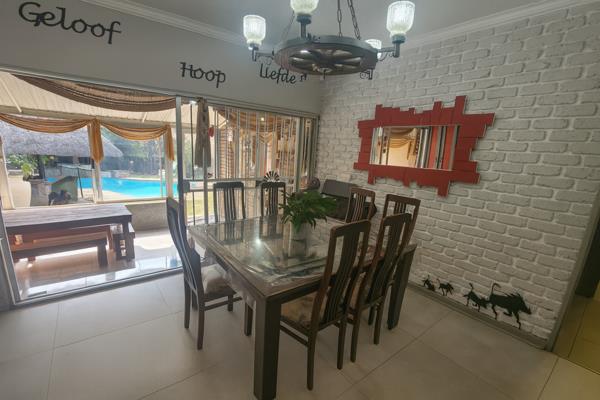 Entertainment is effortless with a lapa and built-in gas braai, an enclosed patio, and a solar-heated pool secured with a safety fence. Children will love the sunken trampoline, while the established garden and borehole keep the greenery thriving all year round.
