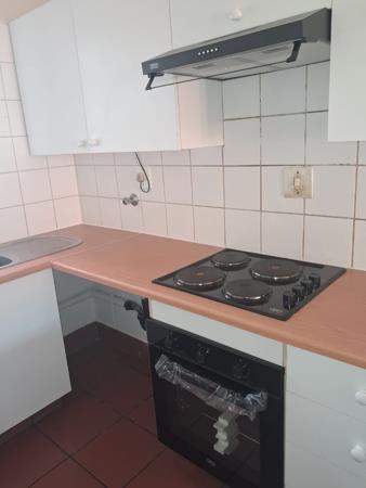 Open-plan kitchen featuring a brand new stove and hob, plenty of built-in cupboards, and sleek finishes