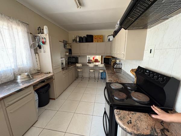 This single story 4-bedroom family home, nestled on a generous 1242 sqm erf in Wingate Park, Pretoria, offers an inviting lifestyle. The property boasts a large, well-maintained garden with mature trees and a sparkling pool, perfect for outdoor enjoyment. A spacious covered patio provides an ideal setting for entertaining or relaxing, overlooking the lush surroundings.