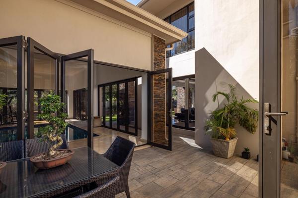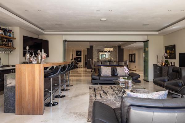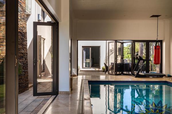 Bedrooms are generously proportioned and the open-plan living areas boast a gourmet kitchen with Smeg appliances. A magnificent home with many comforts and high-end features which include a built-in bar, cinema room, indoor swimming pool, marble floors and much more.