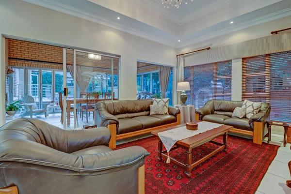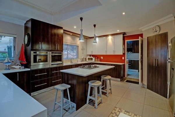 This elegant single-level home in prestigious Woodhill Golf Estate combines luxury, comfort, and practicality. Designed for very low maintenance, it features a large garden, veranda overlooking the pool and garden, and seamless indoor-outdoor living. The expansive open-plan design includes a lounge, TV lounge, dining area, gourmet kitchen with breakfast nook, gas stove, custom cabinetry, granite countertops, big pantry, and separate scullery/laundry. The main suite offers a walk-in closet and en-suite bathroom, while all 3 bedrooms open with stack doors to the pool. Additional highlights include a separate study, full staffroom, versatile tile and laminated flooring, and an enclosed patio with built-in braai for year-round entertaining. Double automated garages with direct access, along with ample parking, complete this exceptional lifestyle home.
