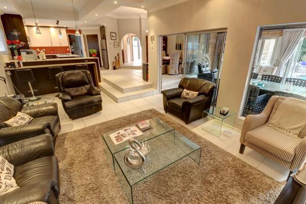 The patio leads out to the Sparkling pool and manicured beautiful garden.