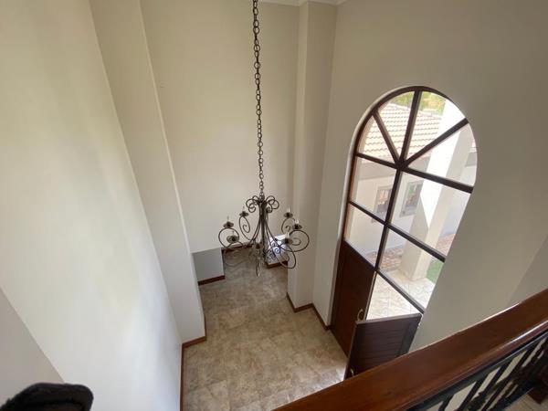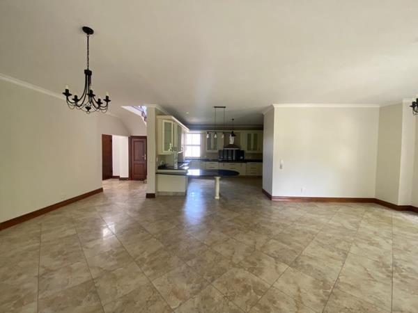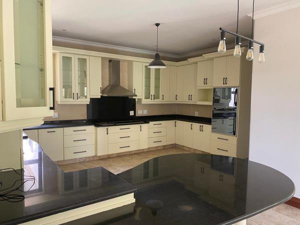 Spacious living areas with a built in gas fire place and enclosed entertainment area with built in braai overlooking the garden and golf course and swimming pool. Beautiful open plan kitchen with solid wooden cupboards, gas and electrical stove hob, double oven and space for a double door fridge. Separate scullery/laundry. Upstairs pajama lounge with sliding doors opening to the balcony with lovely views. 4 Automated garages with direct access into the house. Staff accommodation.