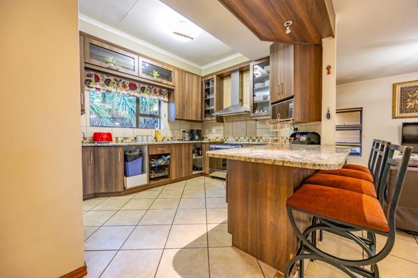 Nestled in the prestigious Woodhill Golf Estate, this exceptional home offers the perfect blend of luxury, comfort, and practicality. The spacious open-plan design seamlessly connects the kitchen, dining, and living areas, creating an inviting space for family gatherings. The modern kitchen, equipped with a gas stove, flows into a separate scullery with space for a double-door fridge and two appliances. A guest toilet adds to the convenience, while three well-sized bedrooms, each with built-in cupboards, share a full bathroom. The second bedroom also features a built-in desk and shelving, perfect for work or study.