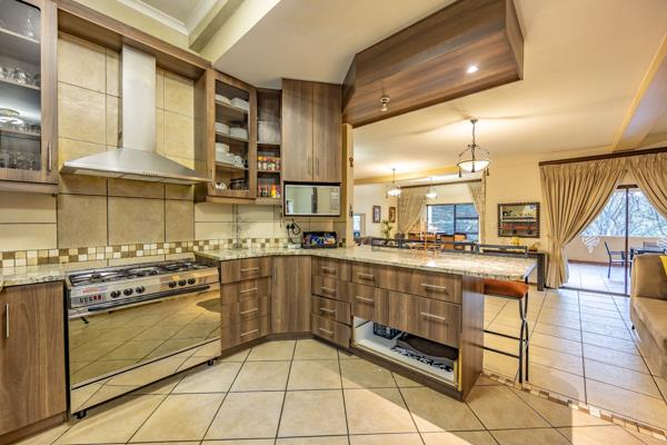 Outdoor living is equally impressive, with a covered patio and built-in braai overlooking the sparkling pool, perfect for entertaining. The beautifully landscaped garden includes a boma fire pit, ideal for enjoying evenings under the stars. Staff quarters ensure added convenience, making this home a perfect combination of style and functionality in one of Pretorias most sought-after estates.