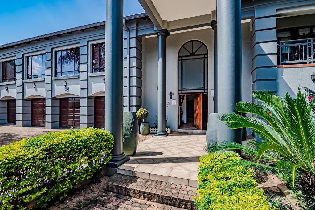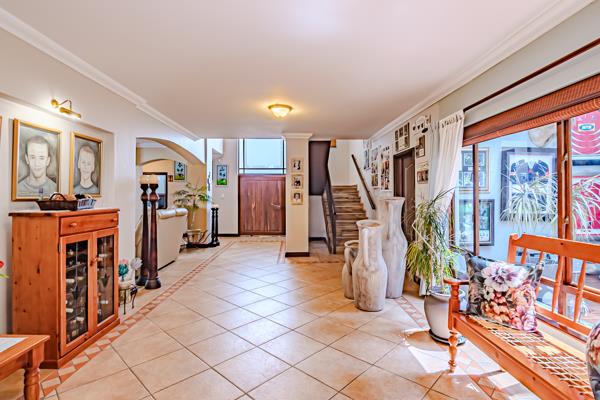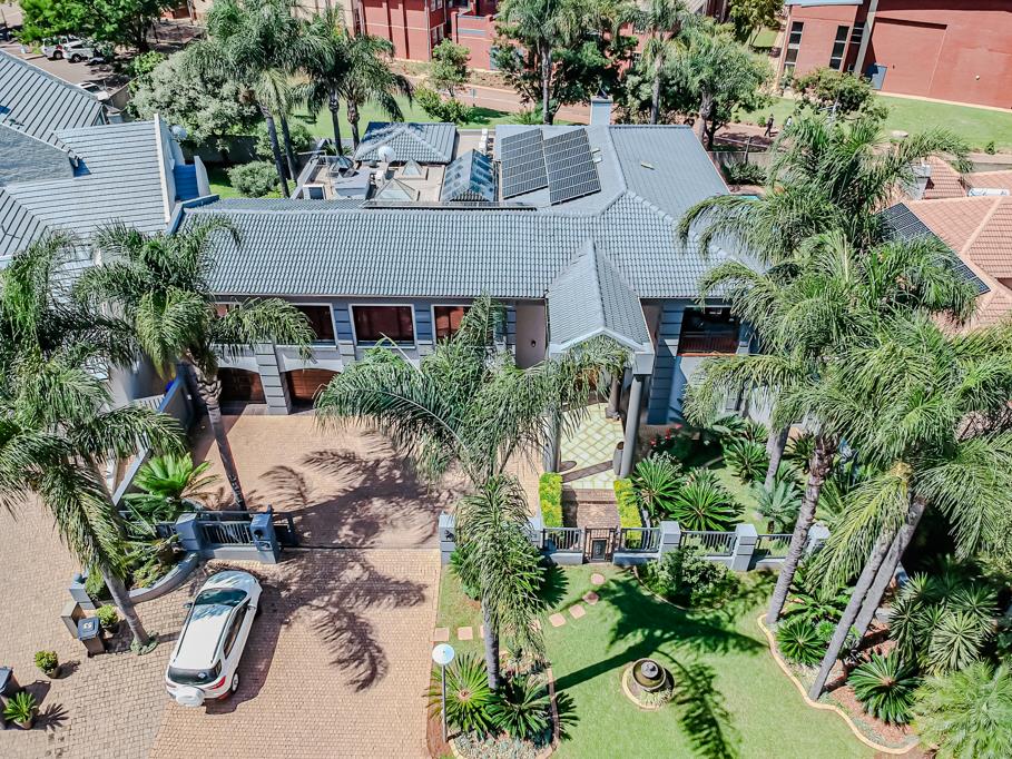 THE BEST VALUE FAMILY HOME WITH OFFICE SPACE. DOWNSTAIRS: When entering the impressive front door, family and friends experience the feeling of space with the double volume entrance. A door leads from the 3 lock up garages into the house. Guest toilet. Spacious formal lounge, open plan tv lounge and dining room. The dining room with an aircon is linked to the kitchen with its ample cupboards with granite tops, pantry, gas stove hob, electric oven, and the must have separate scullery with space for 3 appliances. The backdoor leads to the courtyard and laundry room. From the tv lounge is sliding doors that leads to the heart of the home the entertainment area with stack doors that opens to the garden. The entertainer will enjoy the entertainment room where joyful moments can be shared with family and friends while enjoying a view on the manicured large garden with a focus point sparkling pool. The entertainment room has a wooden deck with a jacuzzi, gas braaier, oven, build in cupboards plus space for a fridge. Impressive stairs lead to the upper level. UPSTAIRS: Big office space is ideal to work from home. The office has an open plan area enough space to fit 4 desks, kitchenette and a separate office plus a bathroom. The spacious main bedroom with its wooden fireplace has an aircon, tv point, his and hers cupboards, a main en suite bathroom plus a gym room. On this level is also another 3 bedrooms. Bedrooms 2 and 3 share a bathroom and each room has a tv point and an aircon. Bedroom 4 also has a tv point and an aircon plus a private balcony. Family bathroom. The house also has staff accommodation. EXTRAS: Generator, 2 x water tanks, irrigation system, pool heat pump. VIEW NOW!