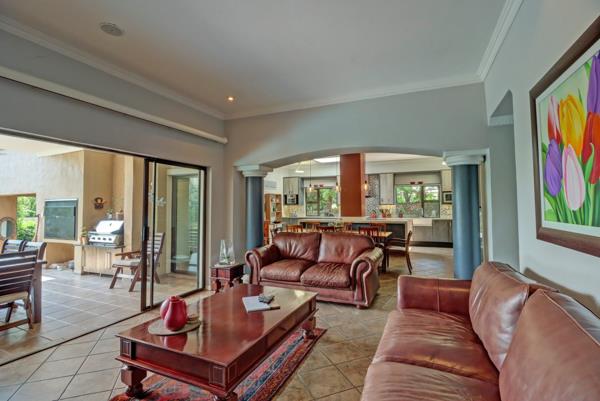 This exceptional home effortlessly blends timeless charm with modern comfort. As you step inside, you are greeted by expansive open-plan living areas, designed for effortless entertaining and family gatherings. The kitchen is a true highlight, featuring a large island thats perfect for preparing meals while staying connected with loved ones. The generous patio offers stunning views of the pool, lush garden, and a cozy boma, creating the ideal setting for outdoor relaxation and entertaining.