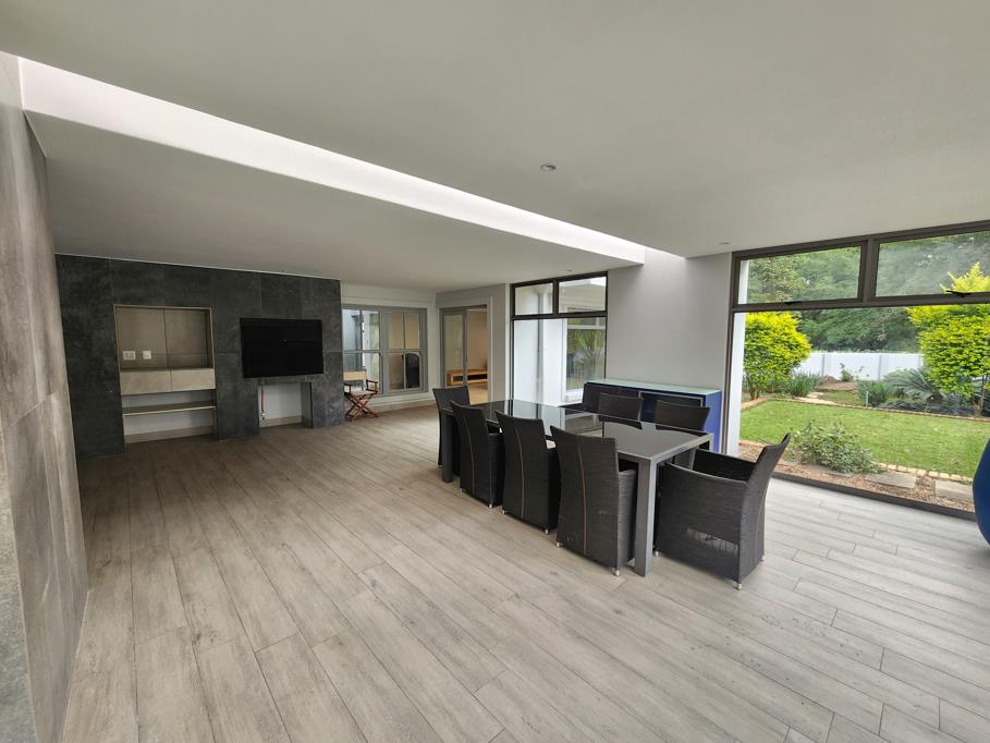 stunning entertainment area, complete with a boma, a sparkling swimming pool, and breathtaking views of the lush golf course.