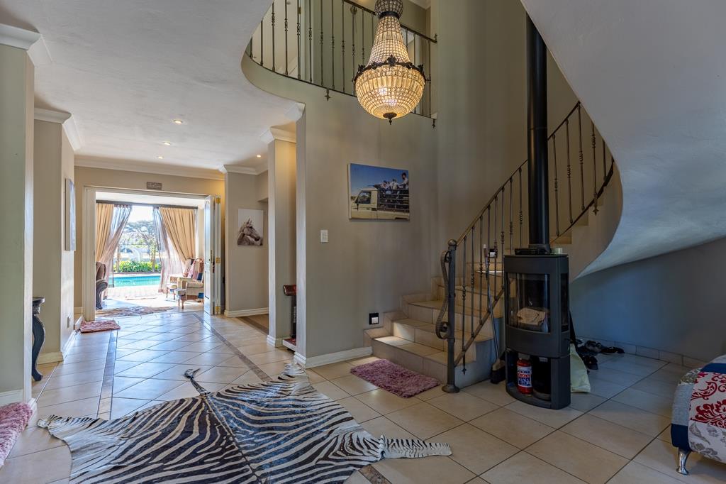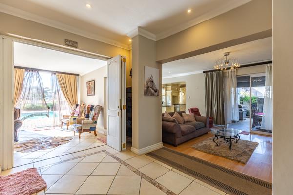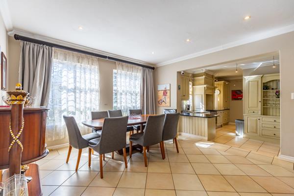 The home features seven large bedrooms and eight bathrooms, with a layout that includes four lounges/dining areas, allowing for both quiet family time and hosting on a larger scale. The central kitchen connects easily with the main living spaces, with a separate braai roomswith stacking doorscreate the perfect flow for year-round gatherings. Air-conditioning units have been installed throughout key areas of the house, ensuring comfort in every season. A study provide ideal work-from-home setups or quiet zones for homework and reading. The bedrooms are well-proportioned with built-in cupboards, and all eight bathrooms are finished in a clean, modern style.