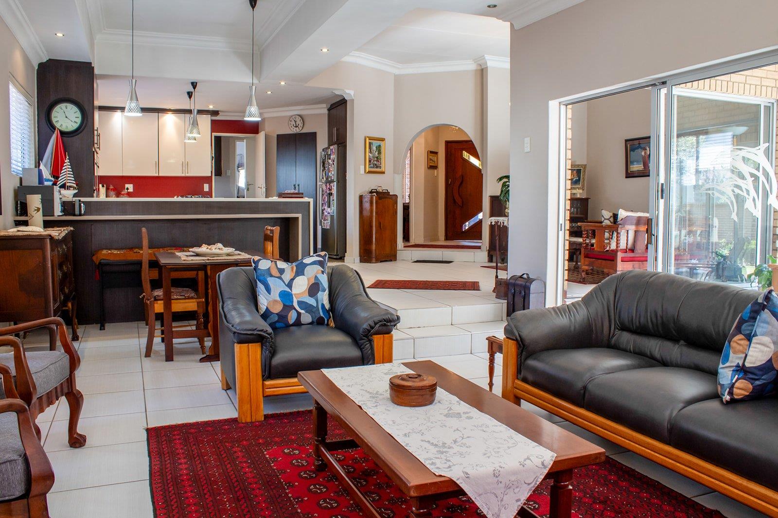 Located in the secure and desirable Woodhill Golf Estate, this beautifully appointed 3-bedroom family home seamlessly blends contemporary design with classic charm, ideally located near major roads, top schools including Woodhill College Private School, as well as shopping and medical facilities.