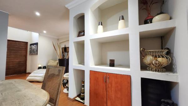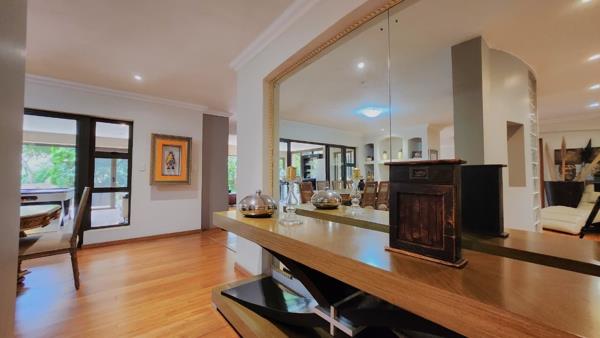 This elegant four-bedroom residence is situated in the prestigious Woodhill Golf Estate, offering a refined and welcoming family environment. The home presents a spacious open-plan layout that connects the living and dining areas to an enclosed veranda with a built-in braai. The downstairs dining area includes a fireplace, creating a warm and comfortable atmosphere that complements the homes modern flow.