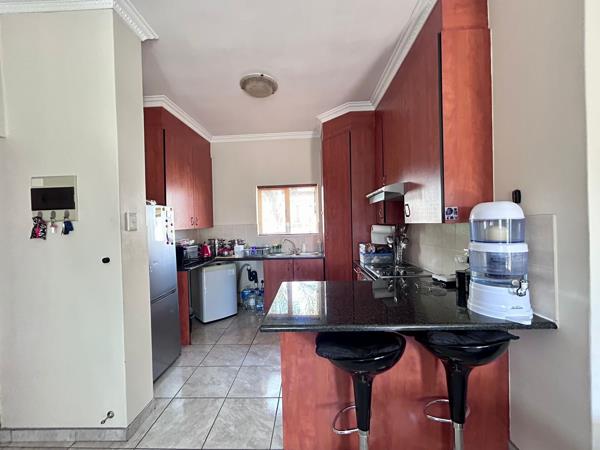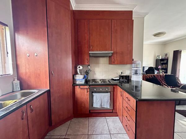 Move in and ready two bedroom apartment available in one of Boardwalk''s most popular estate''s - Eros Villas. Located on the first floor, this spacious bright apartment offers an open plan kitchen and living area that leads outside to an undercover patio. The master bedroom is very well sized with ample cupboard space and a full en-suite bathroom offering a bath and shower. The second bedroom can be used as a home office or guest bedroom and has access to the full family bathroom. The property has prepaid electricity and water with impact meters. Fibre ready. One automated lock up garage and additional parking. Excellent security and the complex offers a communal swimming pool.