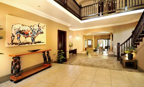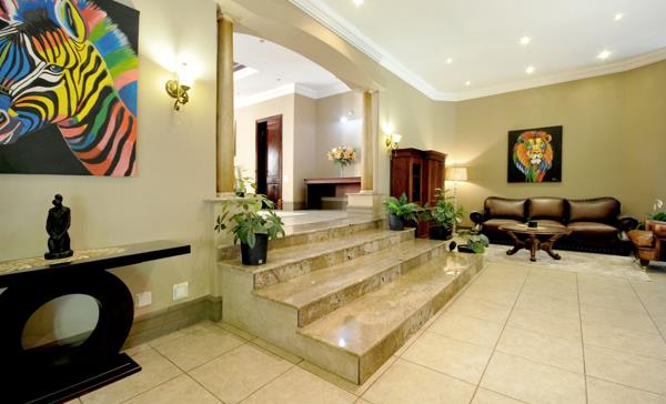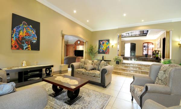 The grand double-volume entrance sets the stage for the homes modern sophistication, with light-filled interiors and superior finishes throughout. Expansive open-plan living areas extend effortlessly through stack-away doors onto a covered entertainment patio with built-in braai the perfect setting for both intimate family moments and stylish gatherings.