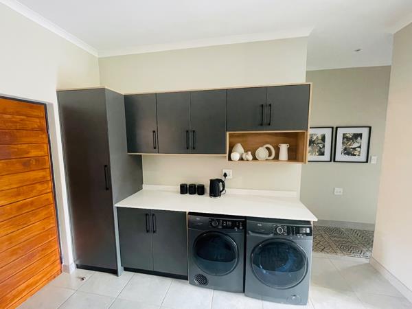 These 3 bedroom houses with build in cupboards offers 2 bathrooms one of witch is a full en-suite bathroom (2 Basins, toilet, bath and shower) and a full bathroom to share for the 2 other bedrooms (Basin, toilet, bath and shower). A modern open plan kitchen with granite tops more than enough cupboard space, very spacious pantry area a Smeg gas hob and electric oven. A big open plan lounge and dining room area that walks out unto a big patio with a build in braai and your very own private garden. Double automated garage and a secure parking area for your guest.