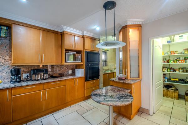 Indulge in the epitome of luxury with this expansive 3-bedroom en suite home. Boasting two double garages, a sparkling pool, and not one, but two spacious lounges, this residence is an entertainer''s dream. The corner bar and enclosed patio with two braais provide the perfect setting for gatherings. The well-appointed kitchen features a scullery and pantry, while the laundry adds convenience.