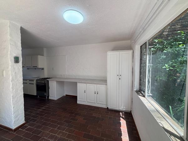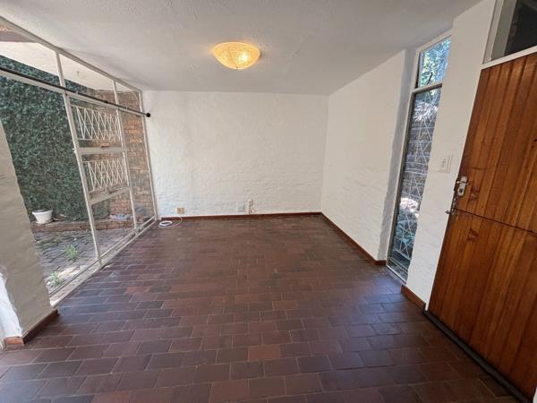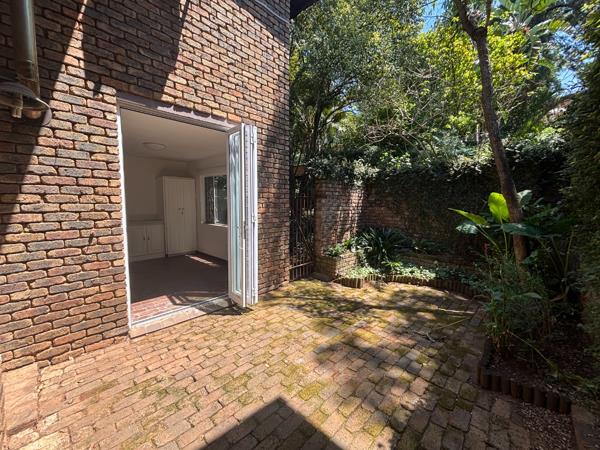 Step inside to a light-filled, open-plan living area with rustic exposed beams and a gleaming tiled floor that flows seamlessly throughout. The space is anchored by a cozy wood-burning fireplace perfect for those crisp Highveld evenings and opens up via stylish stack doors to a private patio oasis. Imagine sipping your morning coffee here, surrounded by mature plants, ivy-cloaked brick walls, and a paved courtyard that''s ideal for al fresco dining or weekend braais. The outdoor area even extends to a quaint side pathway with garden beds, offering extra space for herbs or pets to roam.