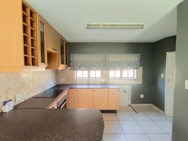 The modern kitchen seamlessly flows into a generously sized living area, which opens onto a private patio featuring a built-in braaiperfect for entertaining guests. The well-kept, pet-friendly garden offers a safe and inviting space for children to play.