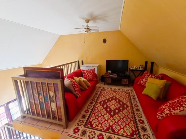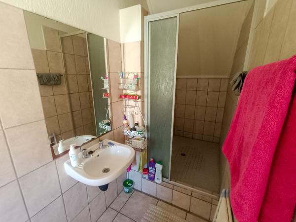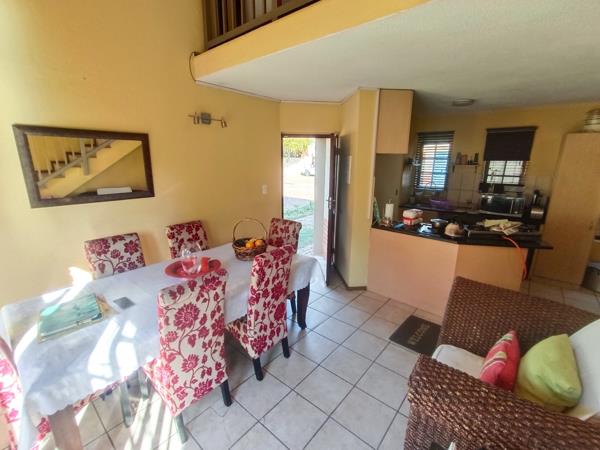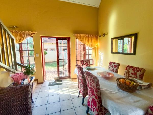 The home also boasts a well-maintained garden, a patio area with a built-in braai, and a double garage. Ample visitor parking is available within the secure and conveniently located complex, which offers easy access to major routes and essential amenities.