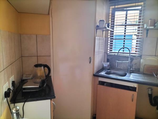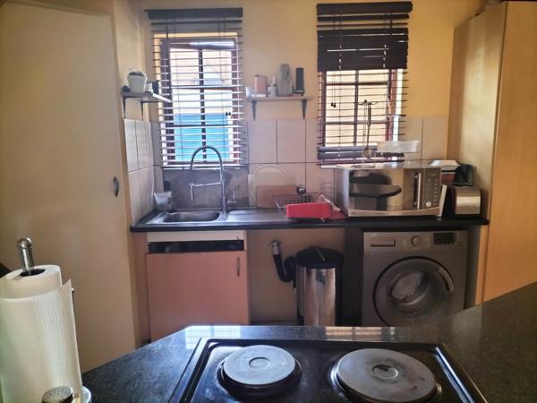 Offers welcome! Nestled in the serene Outeniqua complex within the sought-after Equestria neighborhood of Pretoria, this stunning 3-bedroom, 2-bathroom duplex offers the perfect blend of comfort and convenience. The property features two spacious bedrooms downstairs, a modern living area on each level, and a double garage for secure parking. The upper level boasts a beautiful garden and a built-in braai, providing an ideal outdoor entertainment space for family and friends.