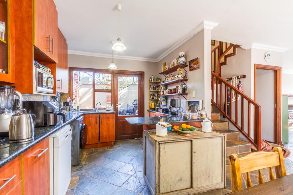 Open plan kitchen with granite counter tops and ample cupboard space integrates with the dining area. The living area complete with fireplace opens up to the courtyard and garden.