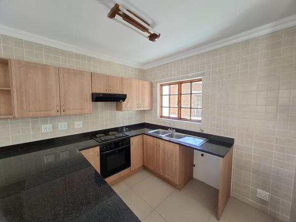 The kitchen has ample cupboard space, granite tops, space for a single fridge and 2 appliances.