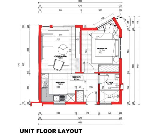 The ground floor apartments offer 1 bedroom, kitchen, full bathroom and lounge.