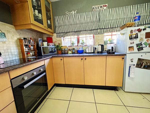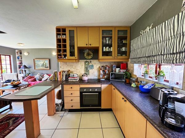 The living area extends to a covered braai area, overlooking a beautifully maintained garden perfect for outdoor relaxation or entertaining guests.