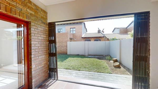 The modern well-equipped kitchen comes with a separate scullery, pantry ample cupboard space and workspace. The open plan kitchen is next to a very spacious dining room, enjoy a formal dinner or move outside through the large sliding doors onto a large cozy semi outdoor covered patio with built in braai adjust to a private easy to manage garden to be tuned into your own beautiful oasis of endless possibilities, no approval needed for splash pool as it is already registered on plan.