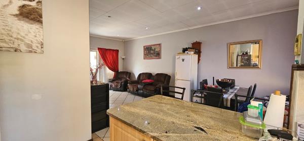This home offers 2 bedrooms, 2 bathrooms and a double garage. Open plan living area with a neat kitchen that feature a striking kitchen top. Undercover patio with a neat garden. Ample parking space for visitors and the complex is inside an estate that features a big communal play area for kids, braai area a club house and a variety of sporting activities.