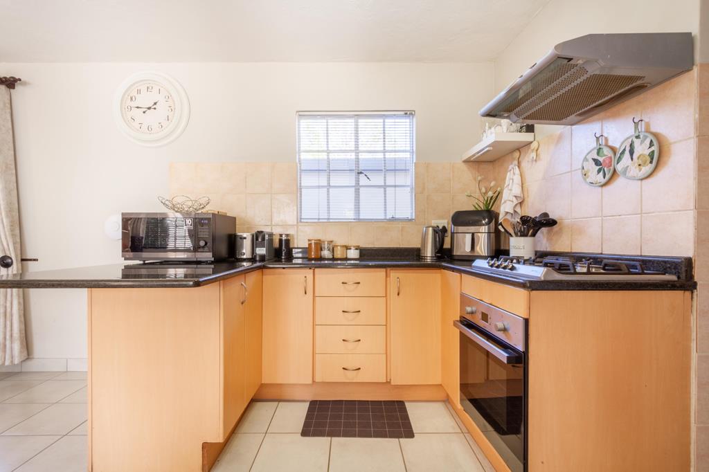 Open-plan kitchen with gas hob, granite countertops, pantry, separate scullery and ample cupboard space.