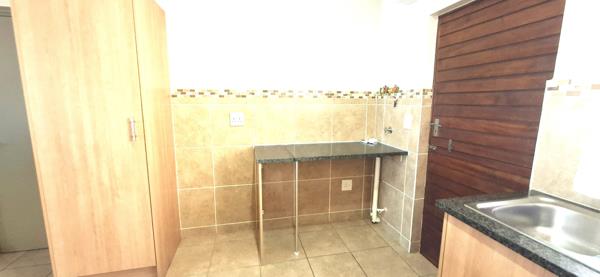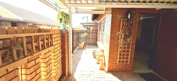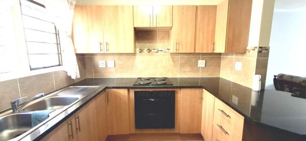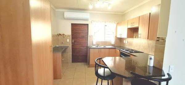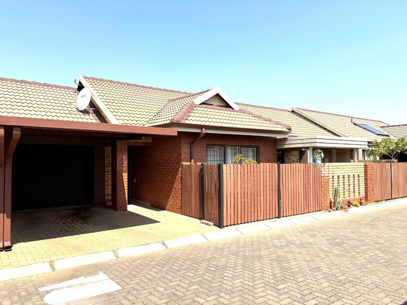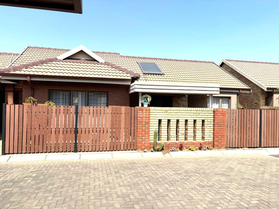This spacious townhouse offers modern and comfortable living with two bedrooms and two bathrooms, one with a bathtub and the other an en-suite with a shower. The home features an open-plan kitchen and lounge, a linen or storage room, and a single tiled garage with an automated door. The living area leads onto a private patio with a louvre deck and a neat garden. A prepaid electricity meter and a solar geyser are included. Sixteen meals are provided in the monthly levy.