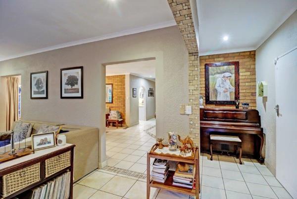You are welcomed by an entrance hall that flows to the expansive, tiled living areas - including a lounge, TV/family room and dining room. The living areas open to the outside, covered entertainment area with built in braai & sparkling pool!