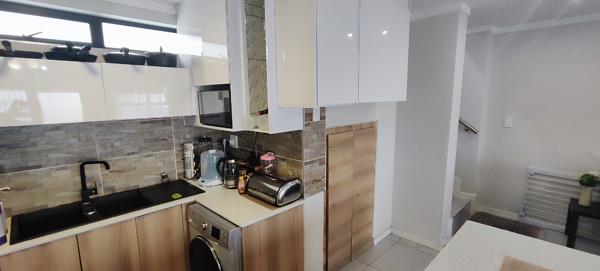 This modern 2-bedroom, 2-bathroom townhouse in the sought-after Vivini Estate, Pretoria East, offers secure and comfortable living in a prime location. The home boasts an open-plan kitchen, lounge, and dining area that flows seamlessly into a small private garden, perfect for relaxed entertaining. The kitchen is stylish and modern, designed for convenience and functionality.