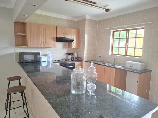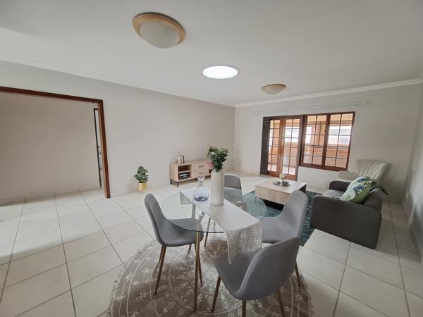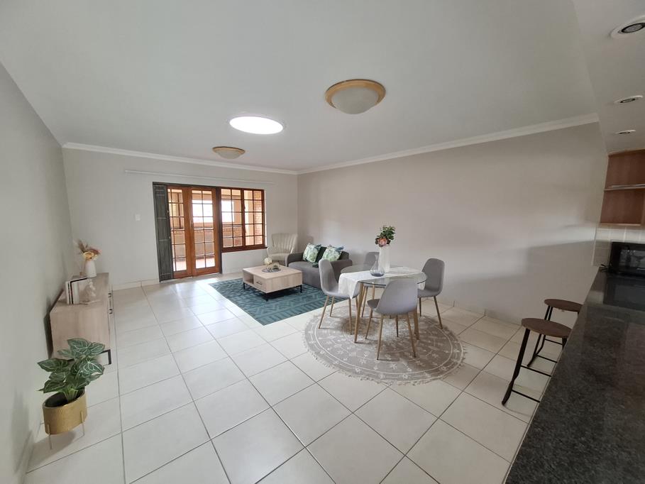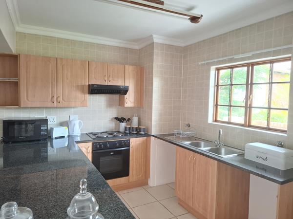 The main bedroom is north-facing, offering generous cupboard space and ample room for a queen-sized bed, a dressing table, and more. The second bedroom is fitted with cupboards and comfortably accommodates a double bed and side tables.