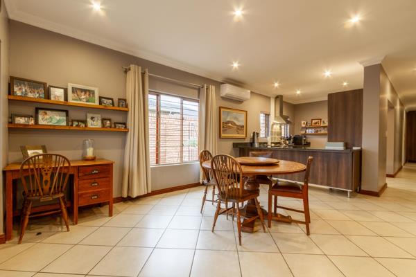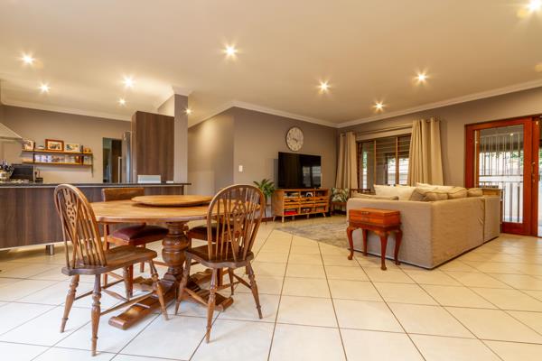 Step inside to discover a well designed and accessible layout. The modern, open-plan kitchen is a highlight, featuring elegant granite countertops, a gas hob, a large pantry with sliding shelves, and a separate scullery for ultimate functionality. It flows into the dining and living areas, creating an ideal space for both daily life and entertaining. The living area equipped with a 18000 Btu air-conditioner extends out to a entertainment area, featuring a built-in braai on a covered patio that flows onto a spacious wooden deckperfect for year-round indoor-outdoor living and braais.