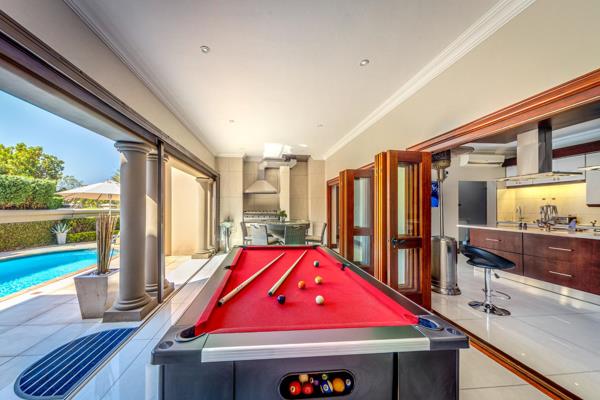 As you step through the impressive wooden entrance, the home unfolds into a spacious entertainment area and TV lounge that seamlessly extend to a heated pool, creating an ideal space for relaxation and social gatherings. The modern kitchen is a chef''s dream, fitted with top-tier appliances and opening onto a patio with a built-in barbecue, perfect for outdoor dining and overlooking the inviting pool.