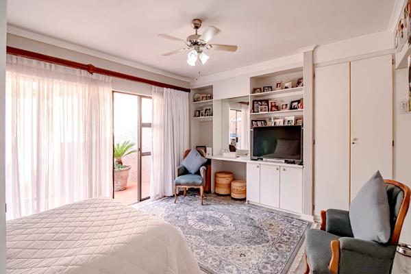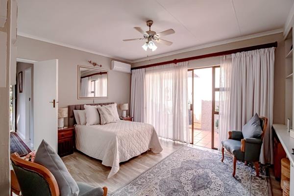 2 Double bedrooms and 2 bathrooms, including a luxurious airconditioned main suite with dressing room, built-in vanity, and sliding door to a private patio.