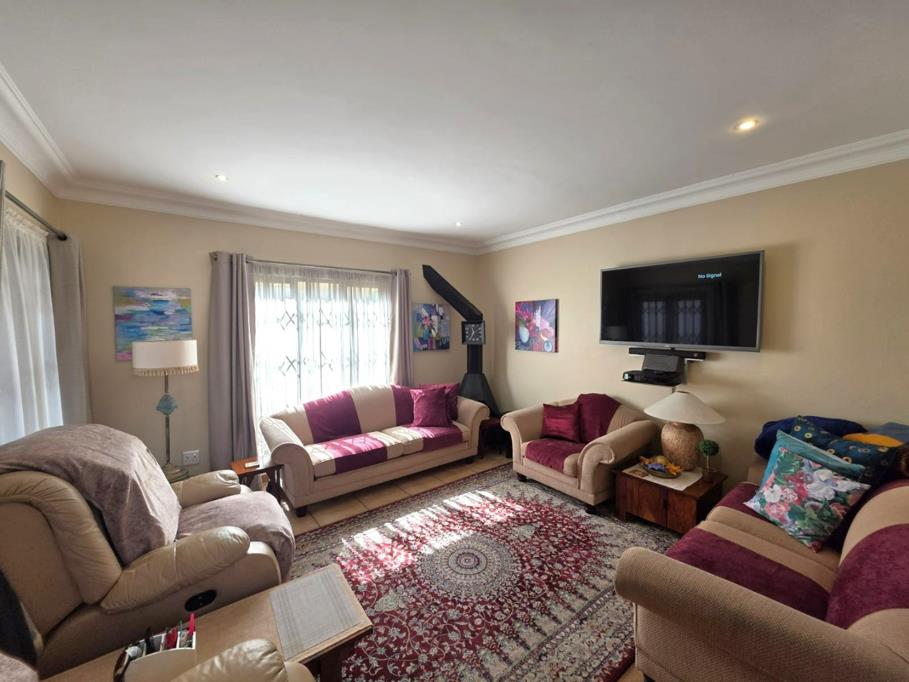 The living area opens through sliding doors to a private, walled garden with a swimming pool and built-in braai perfect for relaxed entertaining.