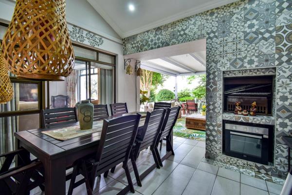 For those who love to entertain, this property features a dedicated braai room with a built-in braai and a lovely covered patio perfect for hosting gatherings year-round. The beautifully landscaped garden, adorned with water fountains and a variety of birdlife, creates a tranquil oasis that is further enhanced by the bonus of borehole water.