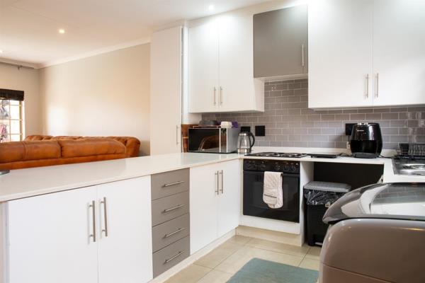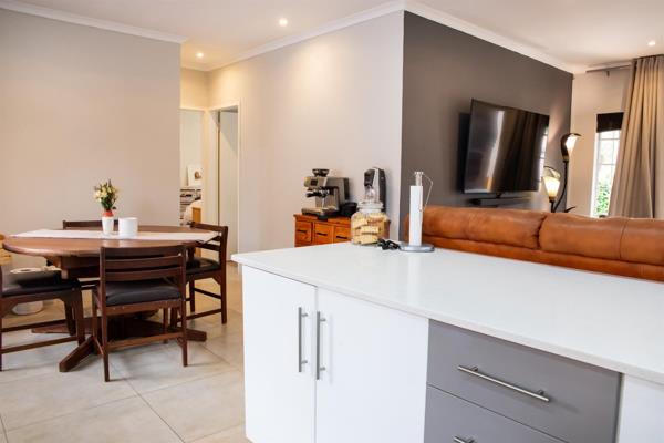 Situated in a private, secluded position within a sought-after security complex, the property features a thoughtfully designed open-plan layout. The modern kitchen is well-equipped with ample appliance fittings, generous built-in cupboards and high-quality granite worktops, seamlessly connecting to the dining area.