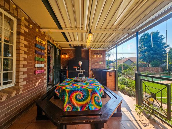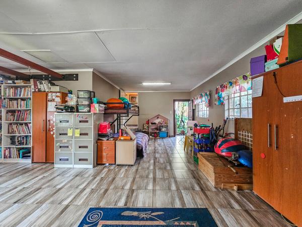 Entertaining is a breeze with a large multi-purpose entertainment room that opens onto a covered patio with a built-in braai, overlooking the beautifully landscaped garden and sparkling swimming pool.