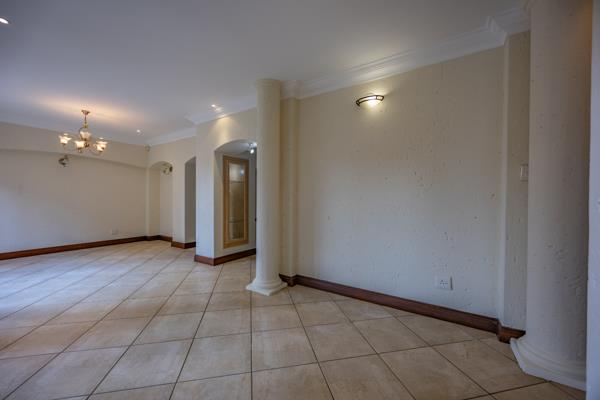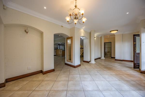 Downstairs, youll find a spacious open-plan layout that seamlessly connects the living and dining areas, creating an inviting space for everyday living and entertaining. Large stacking doors open out to the covered patio, lush garden, and sparkling swimming pool, the perfect setting for weekend braais or relaxing afternoons with family and friends.