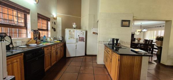 The exterior of the home caters to convenience and future development. Parking is secured by two lock-up garages and supplemented by a generous thatch carport, ideal for accommodating extra vehicles or visitors. The large, manicured stand offers a picturesque backdrop to the home and, most importantly, provides ample space for the addition of a swimming pool or other expansive outdoor activities, allowing the new owner to customize their leisure space.