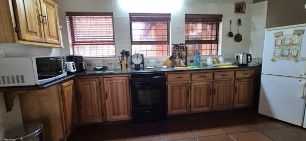 The generously sized kitchen is the heart of the home, built for functionality and storage. It features a separate, spacious scullery complete with a water filter system and boasts a coveted walk-in pantrya rare find.