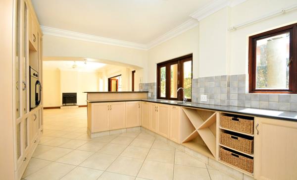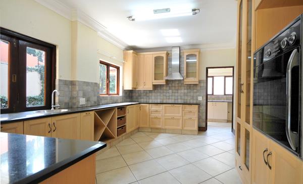 - Modern kitchen with ample built-in cupboards, walk-in pantry, and separate scullery